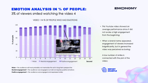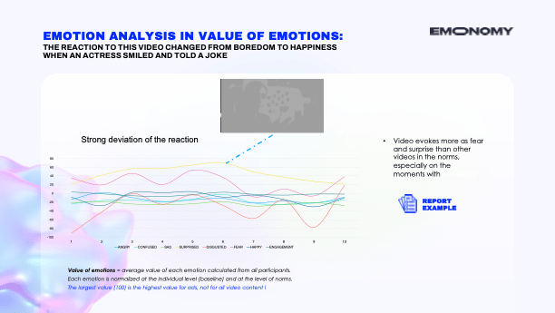 Los análisis emocionales mostraran sugerencias sobre escenas y momentos específicos que harán aún más efectivos tus materiales en video o estáticos con sencillos cambios en postproducción.